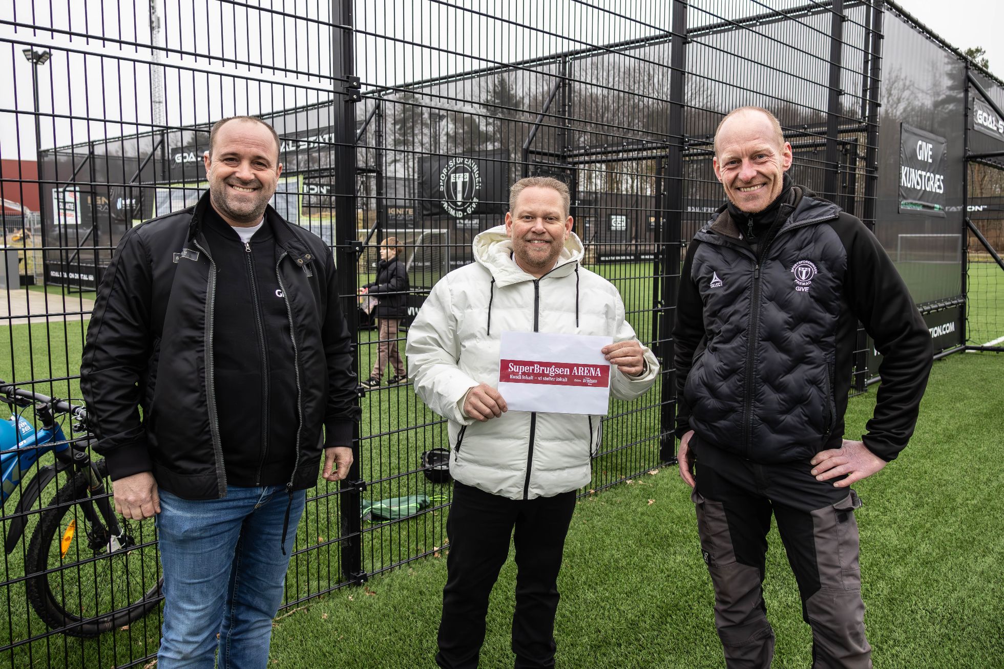 Først blev det afsløret, at den nye idrætshal i Give kommer til at Vestjysk Bank Arena, og onsdag eftermiddag kom det frem, at endnu en stærk lokal medspiller lægger navn til en del af det nye idrætsområde, nemlig kunstgræsbanen, der fremover hedder SuperBrugsen Arena.